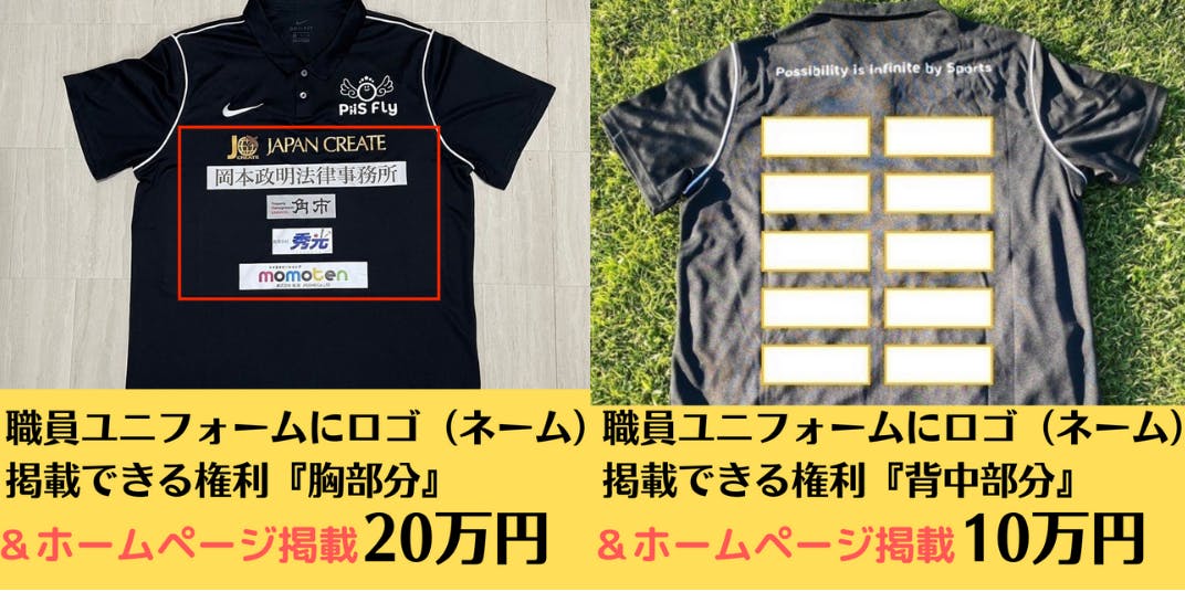 『職員ユニフォームにロゴ掲載できる権利、胸部分』20万円