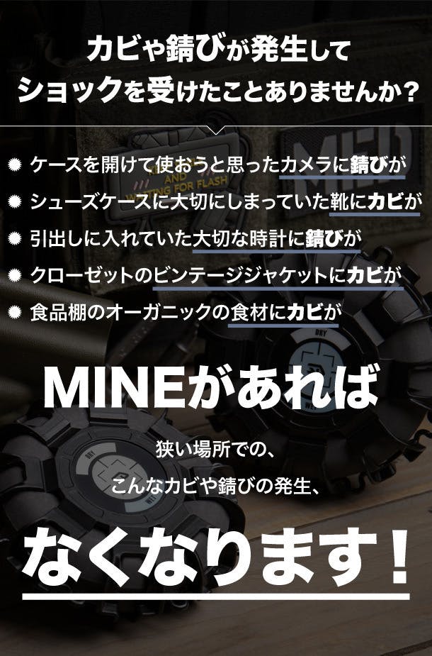 「MINE(マイン)」は、元々ガンケースやモデルガンを湿気や錆から守るため、サバゲーマニアのために開発されたものです。