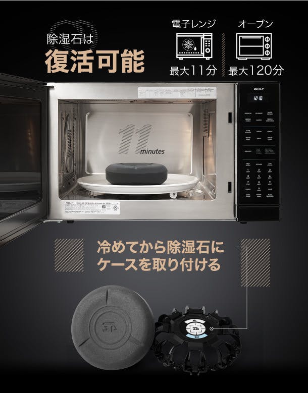 ★電子レンジでの乾燥中は、除湿器が非常に高温になり、除湿器内の水分が加熱されて蒸発します。製品が冷めるのを待ってからお取り扱いください。