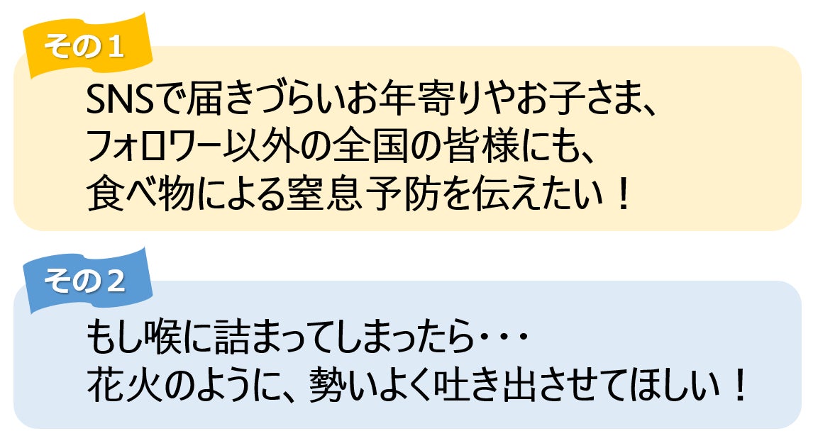 食べ物による窒息を1人でも減らせるように、SNSを駆使して展開していきます!