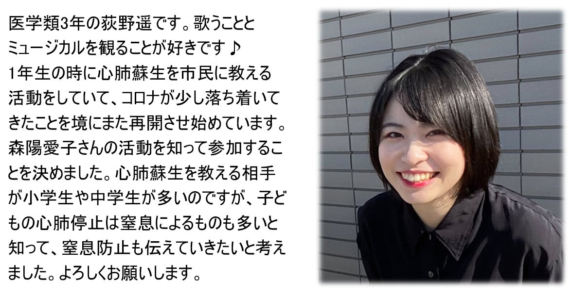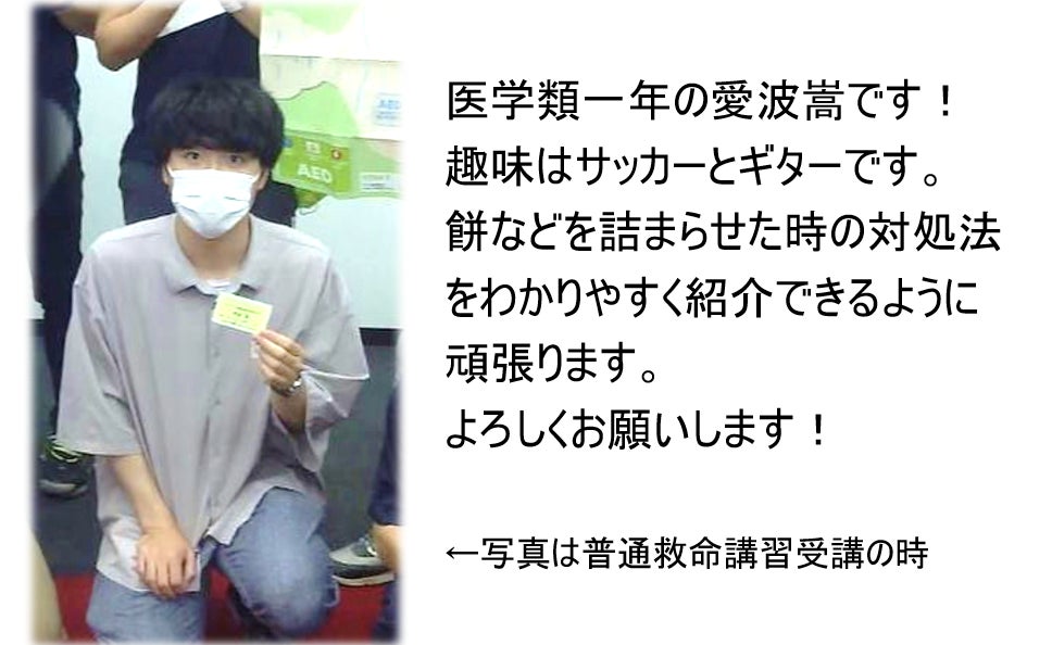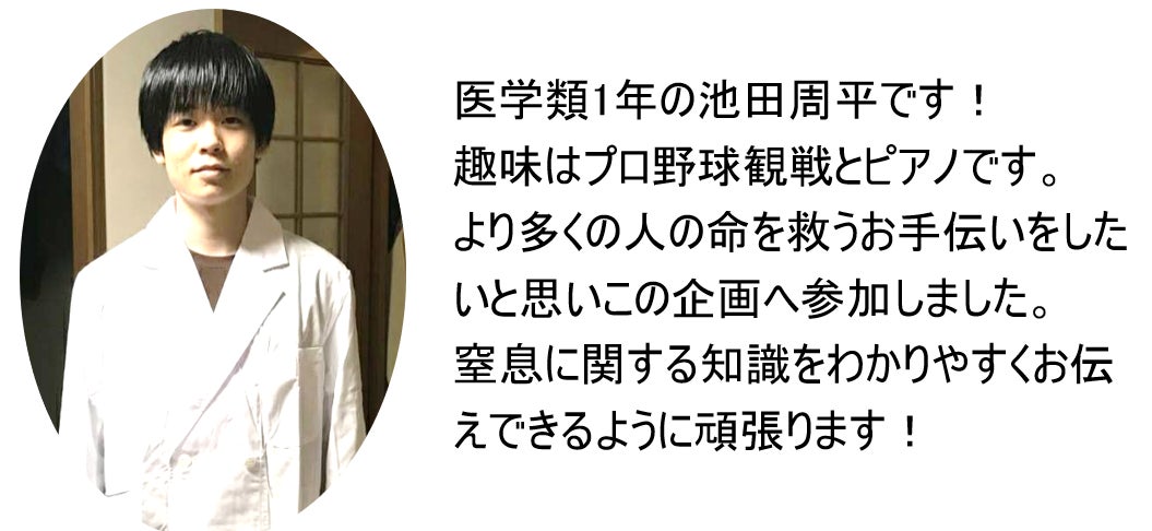 窒息予防・応急処置について医学生が講習会をさせていただきます。内容は、救急科医師の監修を受けて構成いたします。