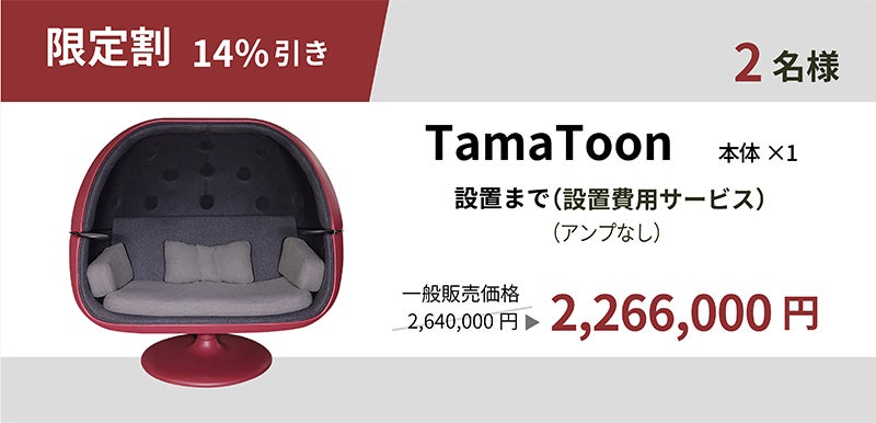 「TamaToon」本体+設置費用込で2,266,000円! 2名様