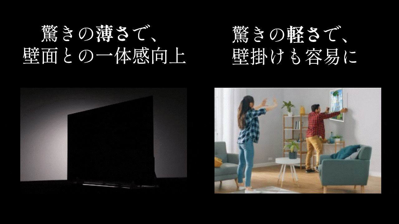 圧倒的薄さと軽さで、壁掛けも自由自在に。