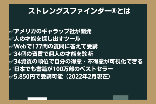 「ストレングスファインダー」(クリフトンストレングス)という才能診断ツールも活用します。