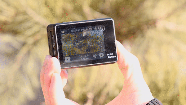 4Kアクションカメラの側面を2秒間押すと、画面が切り替わり、自分撮りモードに変わります。