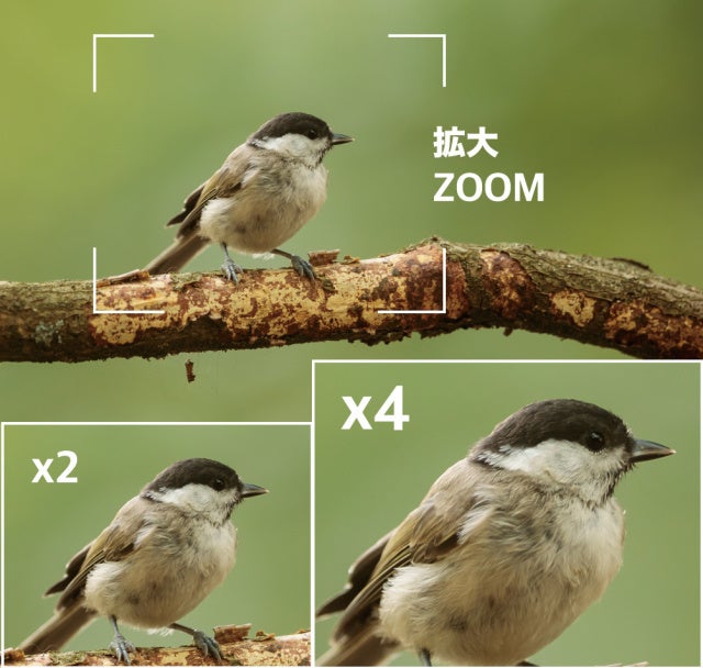 ズーム機能を利用すれば、最大4倍まで拡大して撮影することができます。