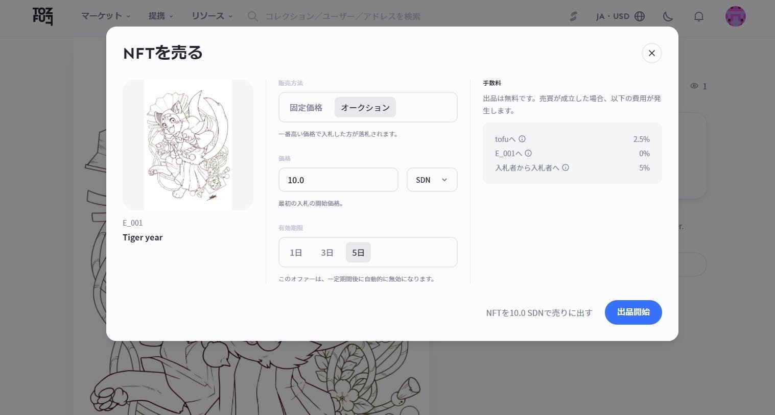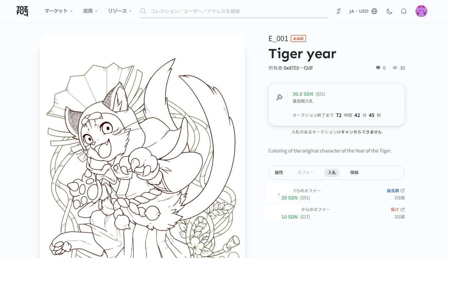 2021/12/22 21:44本リターンの下書きをTofuというNFT販売サイトに掲載し、どのくらいで販売出来るか試してます。現在、30SDNの値段がついております。これは、チャートで確認すると(SND=171.23円)30SDN×171.23円=5136.9円になります。そして、オークションは続いている為、まだ、上がる可能性があります。更に、NFTは転売毎に発行元が転売利益の数パーセントを得ることが出来ます。アーティストの方にとって、この収入がかなりよかったりします。今回、リターンに設定した品を使えば、絵を描くのが苦手でも、NFTに参加することが出来ます。是非、この機会にNFTにチャレンジしてみてはいかがでしょうか。 もっと見る