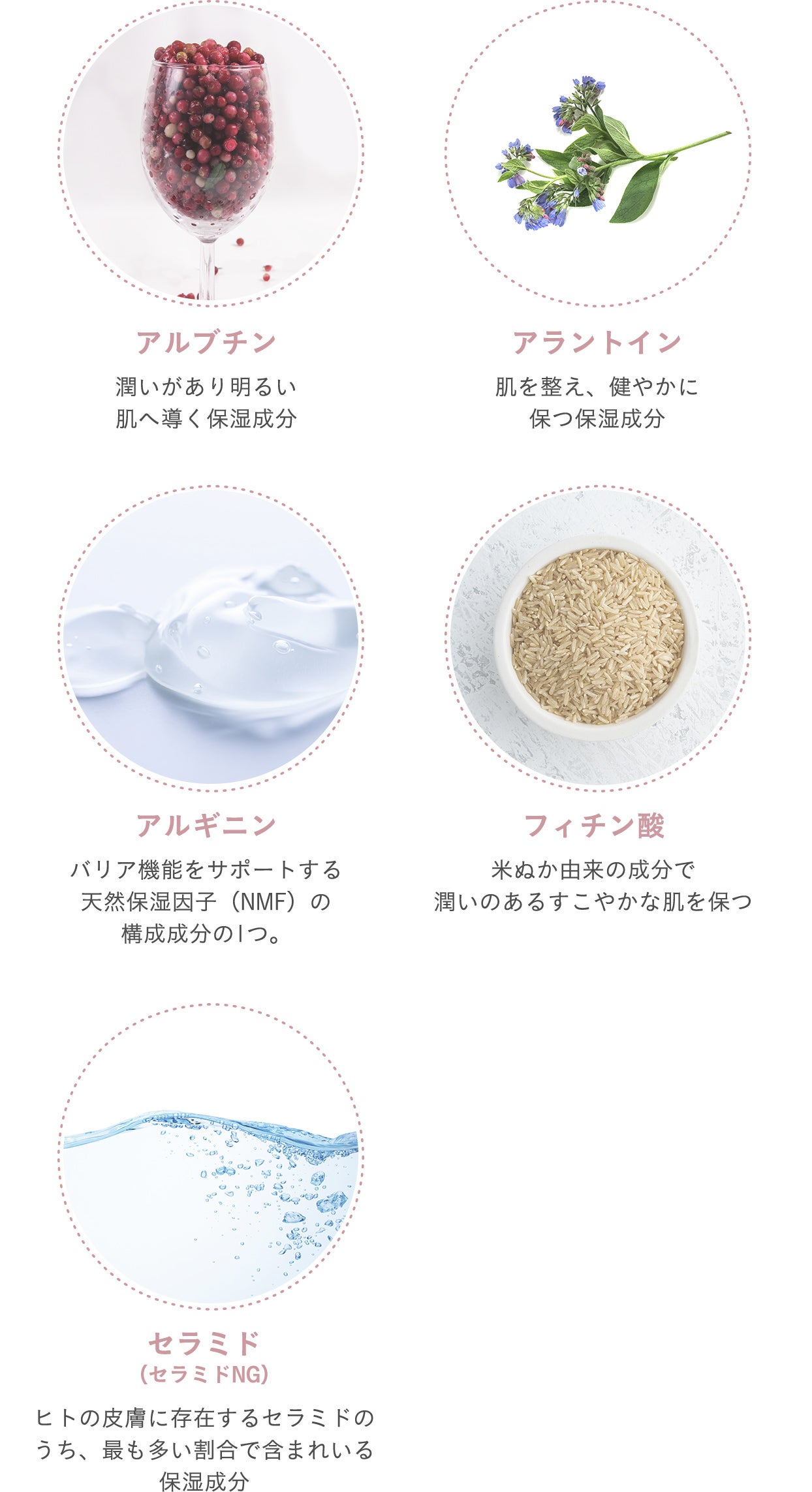 ■ナノカプセル入りセラミド、アルブチンやアラントインなど 5つの保湿成分配合