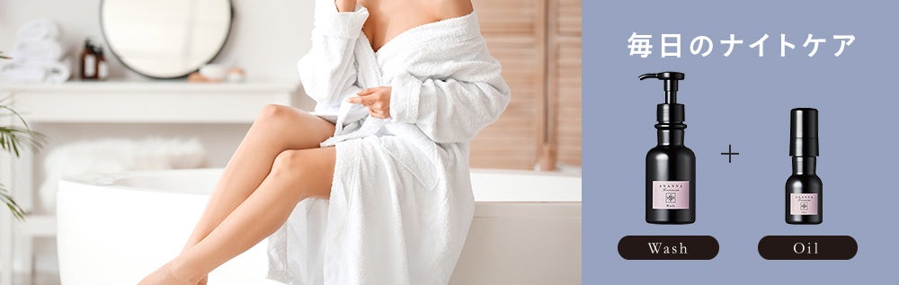 毎日のボディケアと一緒に、ウォッシュで洗い流します。入浴後はオイルを使用して、ハリつやのあるふっくらした肌ざわりを保ちます。