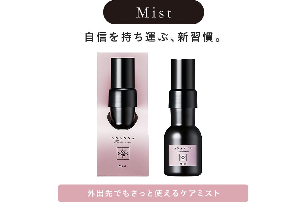 ウォッシュ・オイル・ミストの3つの商品を組み合わせて、快適な日々を送れる「ANANNA デリケートゾーンケア」。カラダの変化やその日の気分に合わせてさまざまなシーンでご利用いただけます。