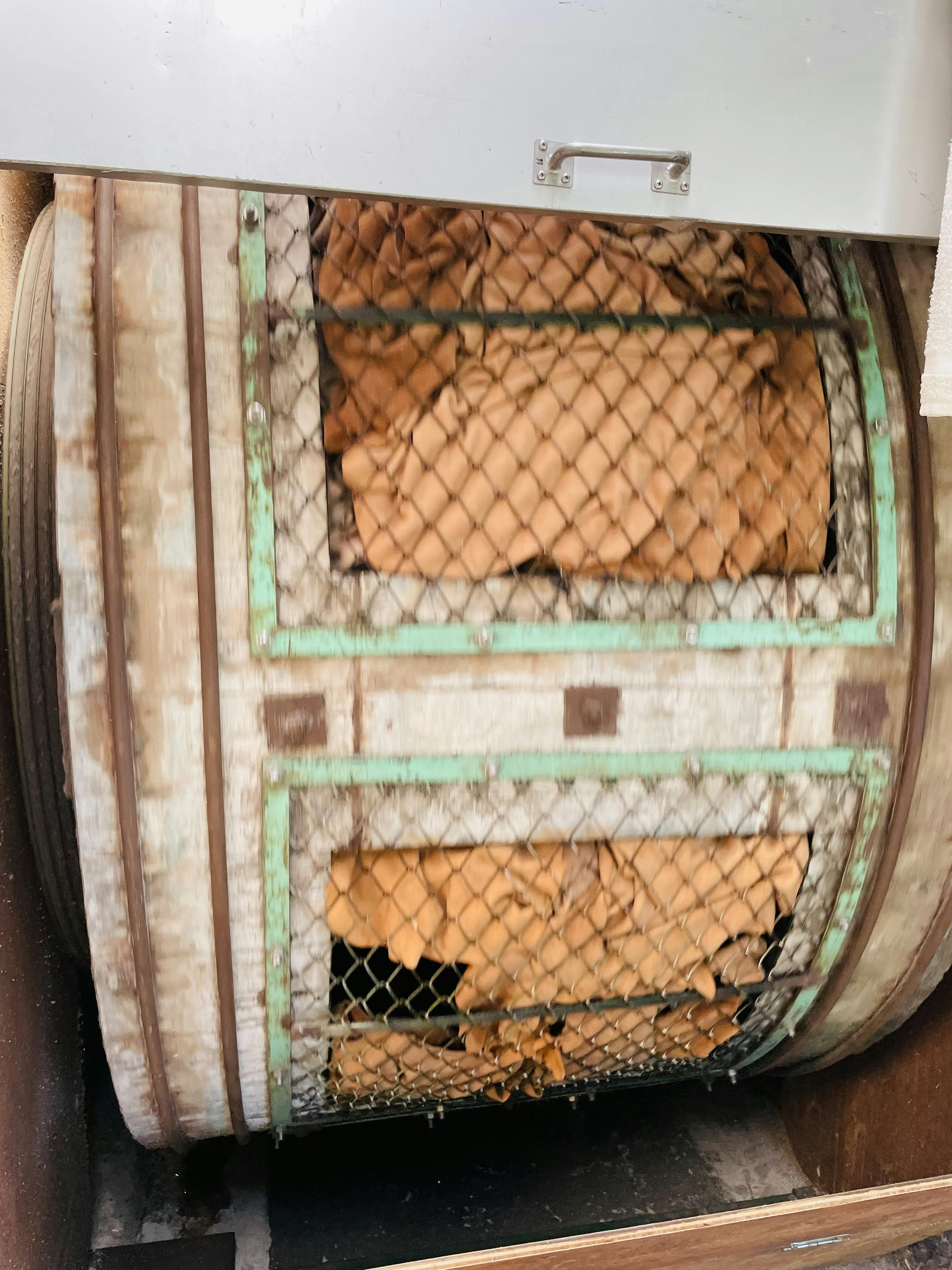 皮革染色では自動スプレー、手拭きスプレー、最後に手作業で色の微調整を行い理想の色風合いに仕上げていきます。