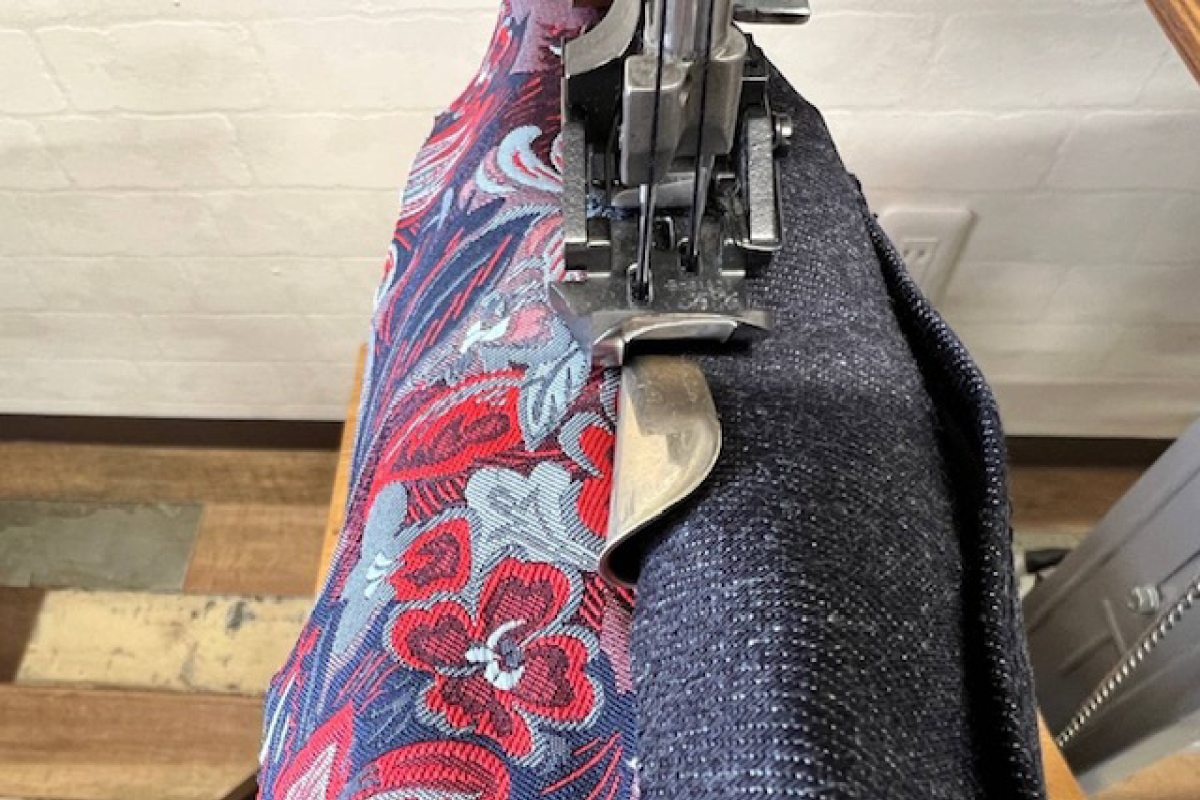 一方、岡山県倉敷市のデニムも独自の拘りでブランドとしての地位が確立され、西陣織とのコラボで日常 にあるべきものとして何か提案できないかと模索し今回の企画が生まれました。
