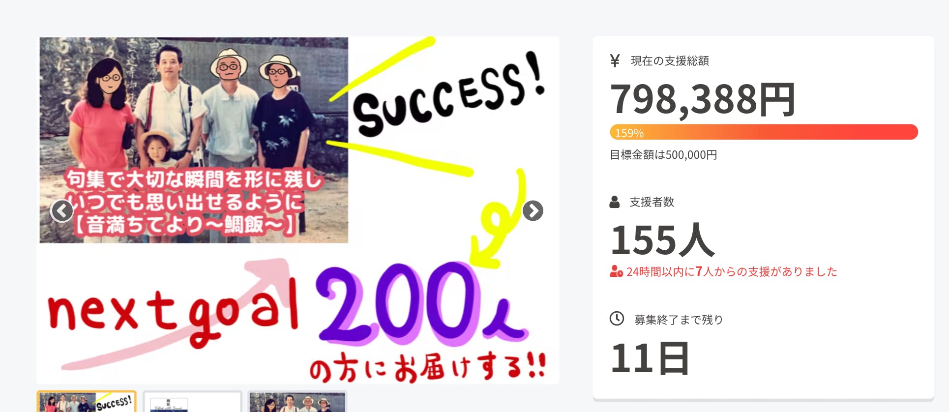 【感謝】2日で100%達成致しました!!