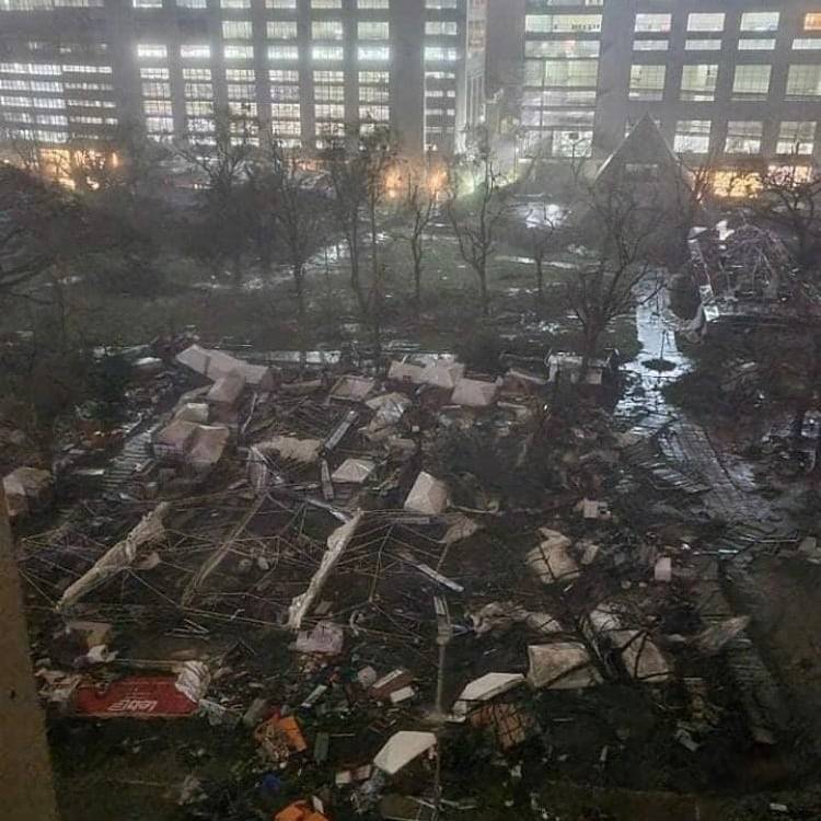 高層ビルのガラスが大量に割れ、地面に降ってきていたり、物流もままならない地域もあります。