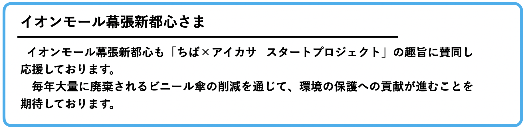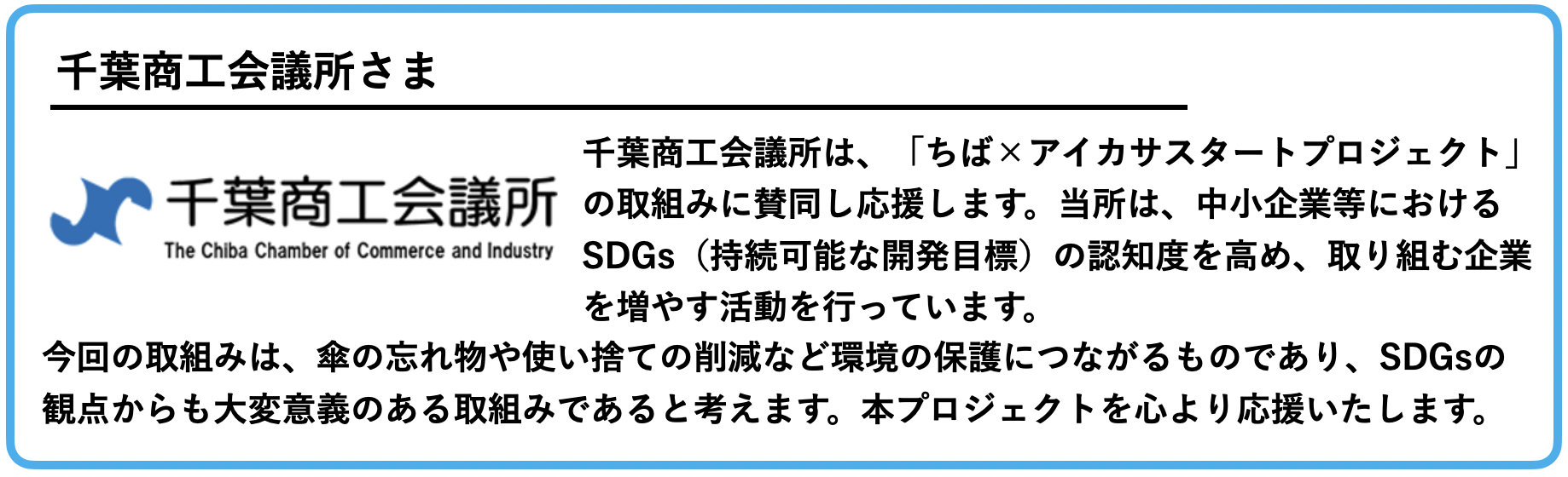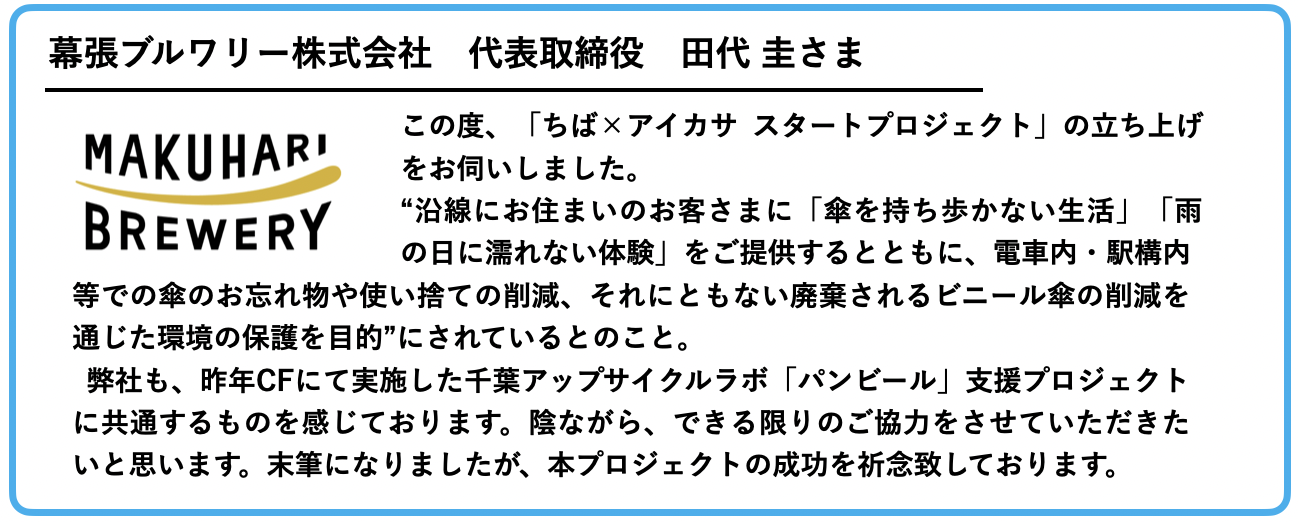 ちば×アイカサ スタートプロジェクトチームのメンバー一同誠心誠意努めて参りますので、何卒よろしくお願いいたします。