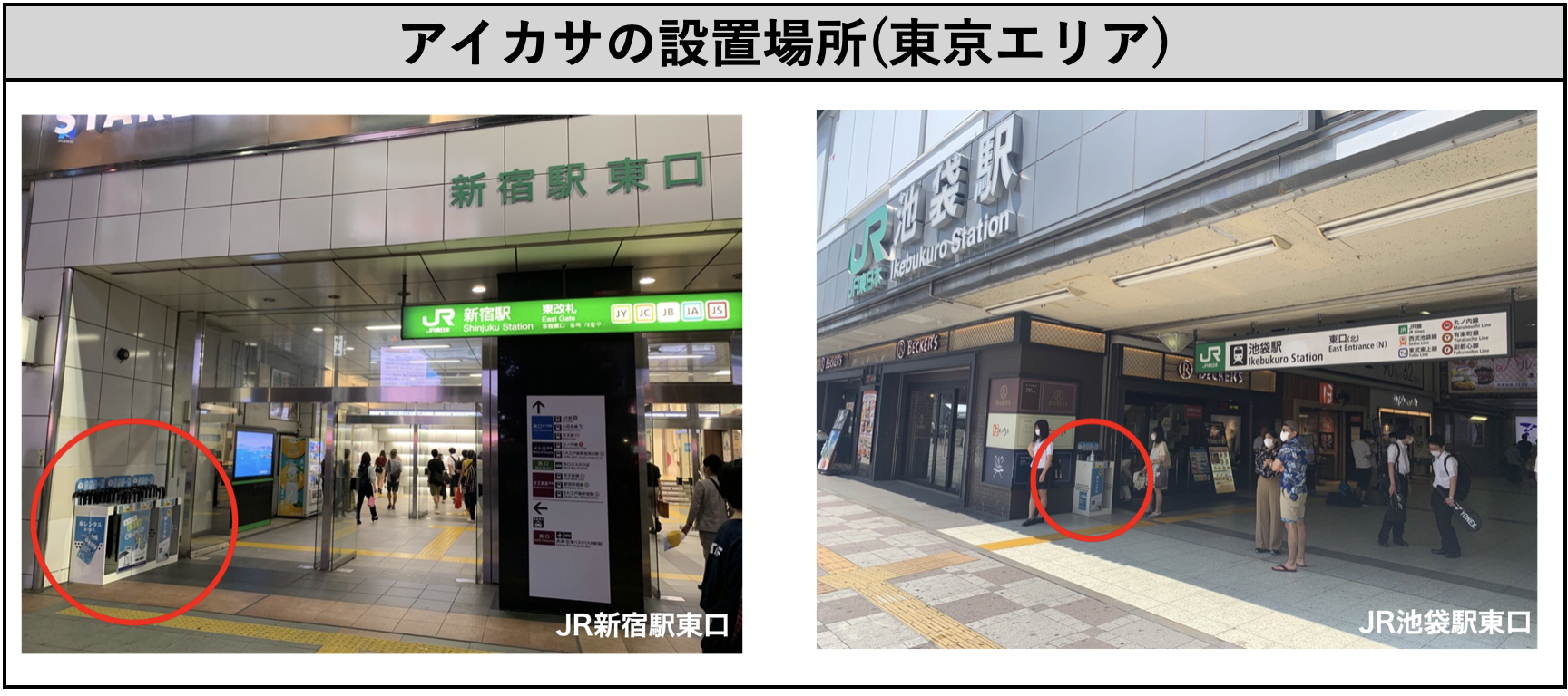 山手線全駅や東京丸の内周辺をはじめ、首都圏では東京・神奈川・埼玉にまで広がっているアイカサ。