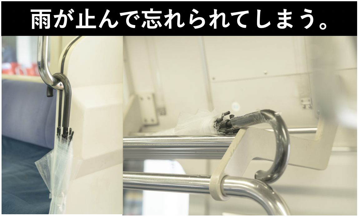 雨が止んで不要になってしまい、電車に置き忘れてしまったり、