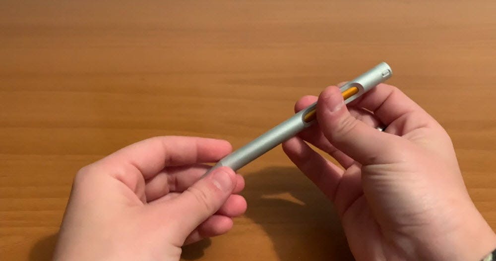 切り欠きから見える中軸部分を回転させて使うのですが、こういった使い方をするペンは初めてという方も多いはず。