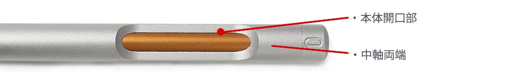 ペン利用時に、この開口部に人差し指の付け根部分がやさしくフィット。