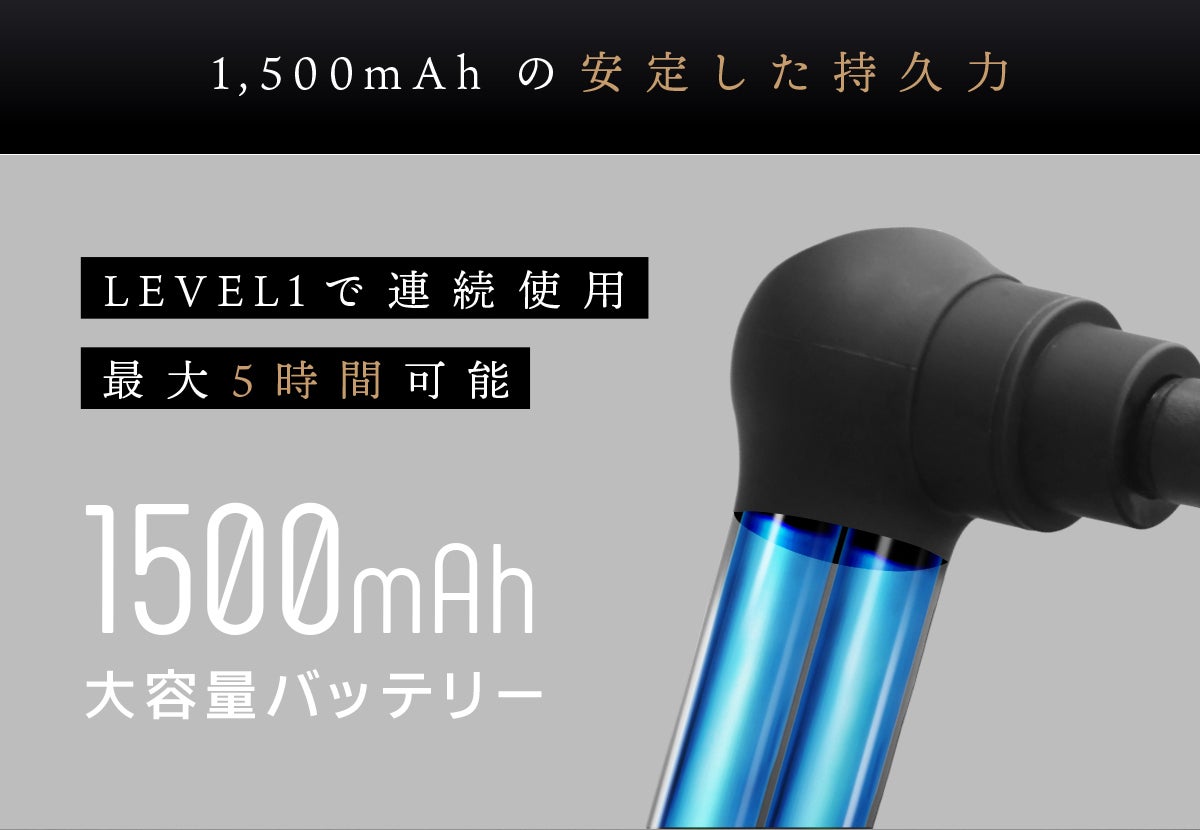 「LOOSEN GUN -Zero-」は振動を深度12~14mmまで届けることができる、小型なのにハイパワーな筋膜リリースガンです。 コマメな充電を必要としない大容量2000mAhバッテリー、