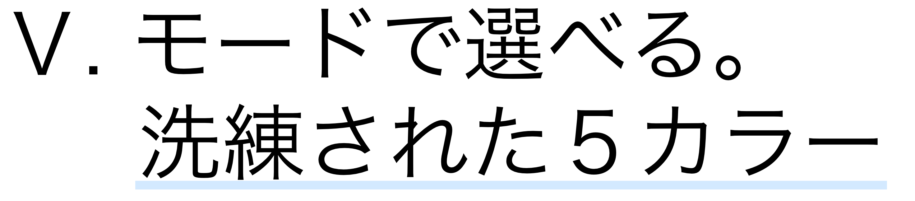 カラーバリエーションは厳選した5色で展開。