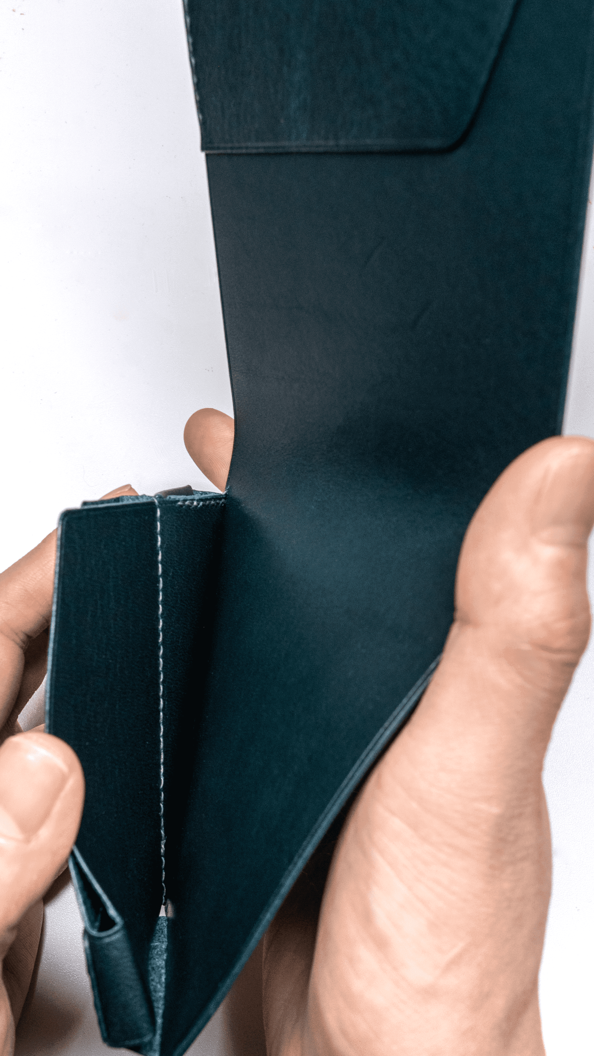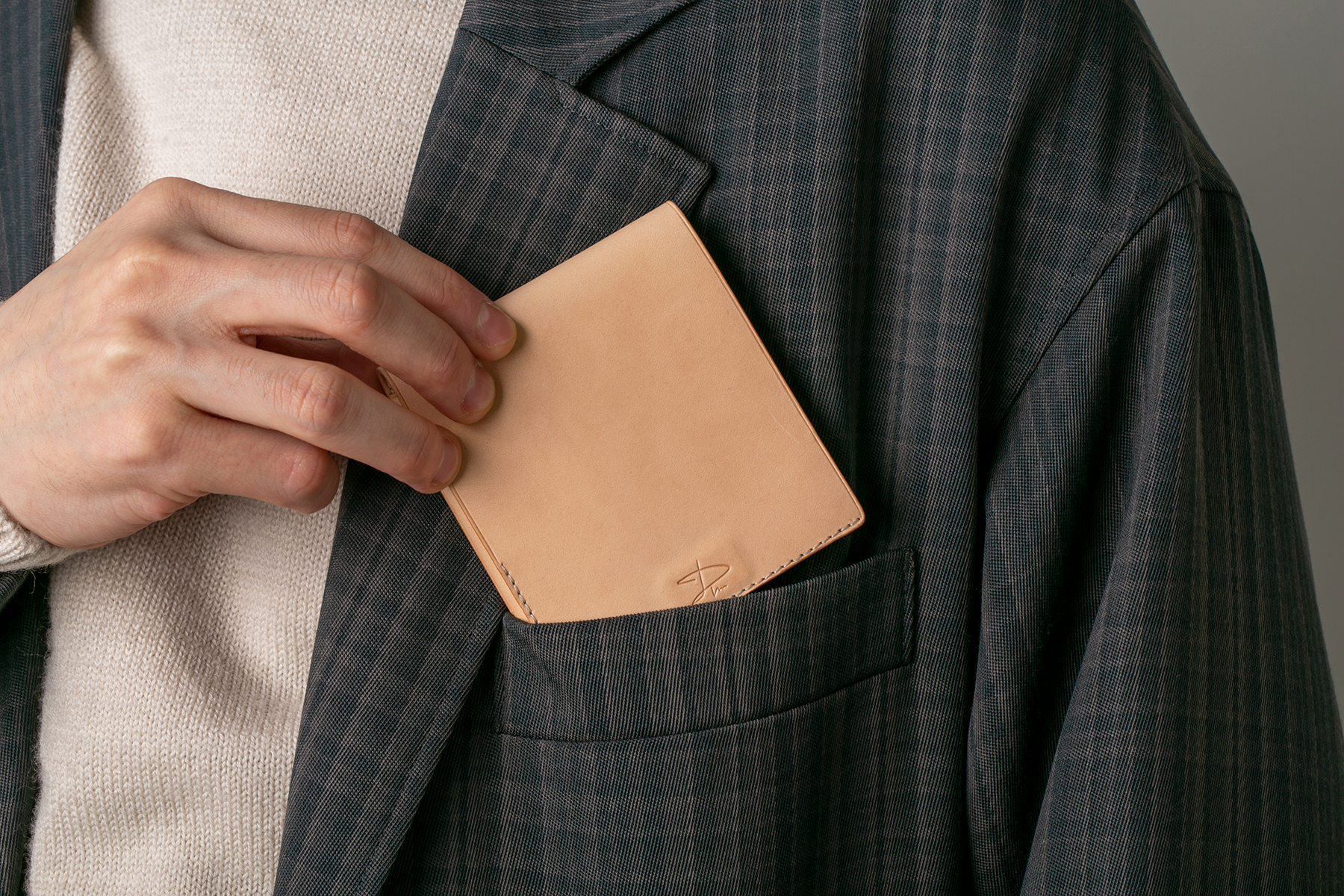 この財布は「引き算の美学」をもって取り組んだ製品のため、外見上シンプルではありますが、縫製・ステッチ・コバ(革の側面)・ロゴの刻印・銀面/床面の仕上げまで、妥協はありません。