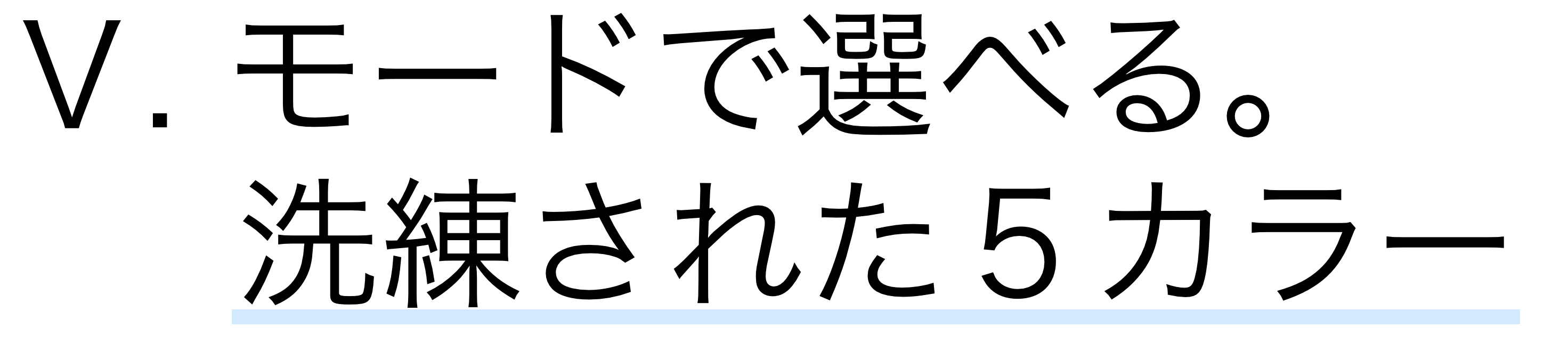 季節も昼夜も、デイリーもエレガントも問わず、あらゆるシーンで鮮やかに映えるカラーだけを揃えました。