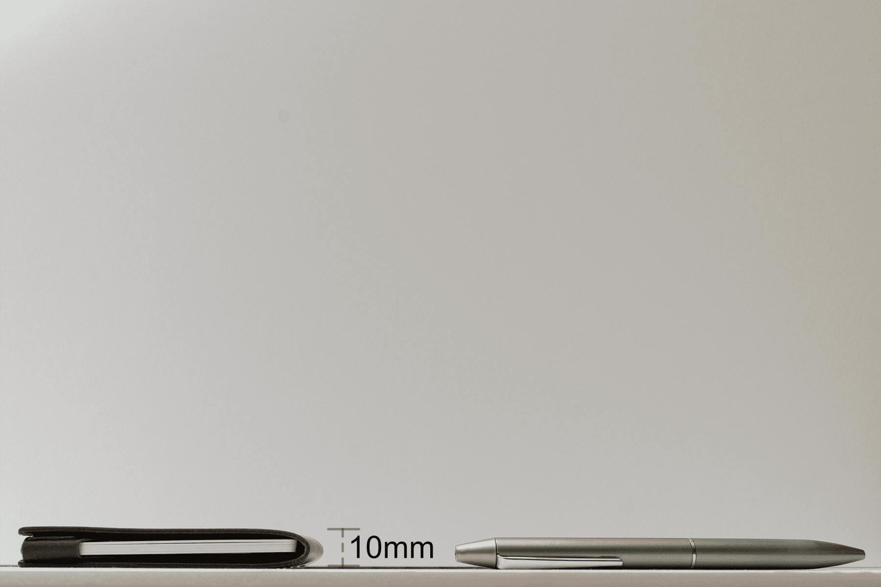 持ち歩きたくなるデザインを追求した結果、収納容量に対して非常に薄くコンパクトになりました。