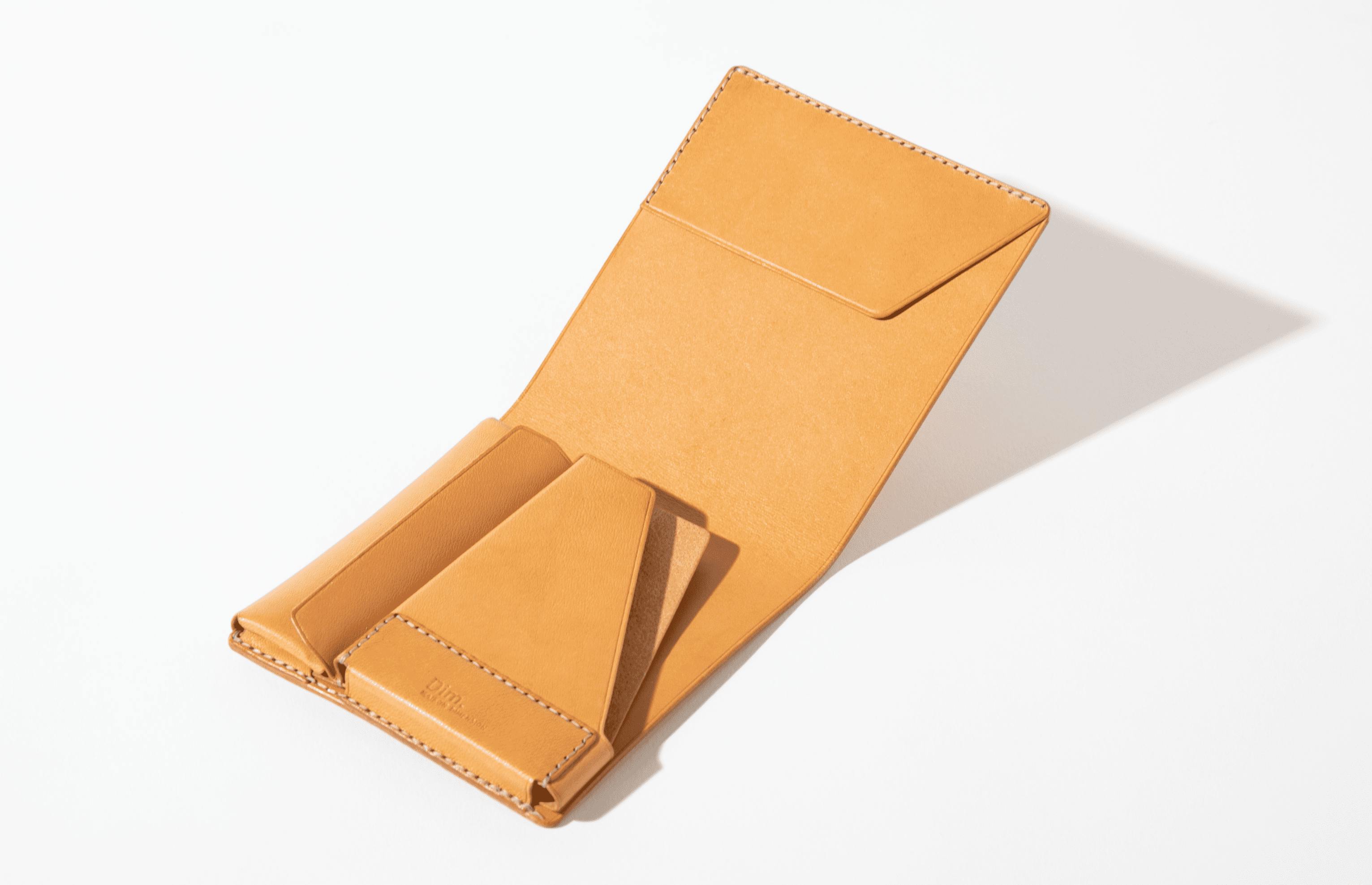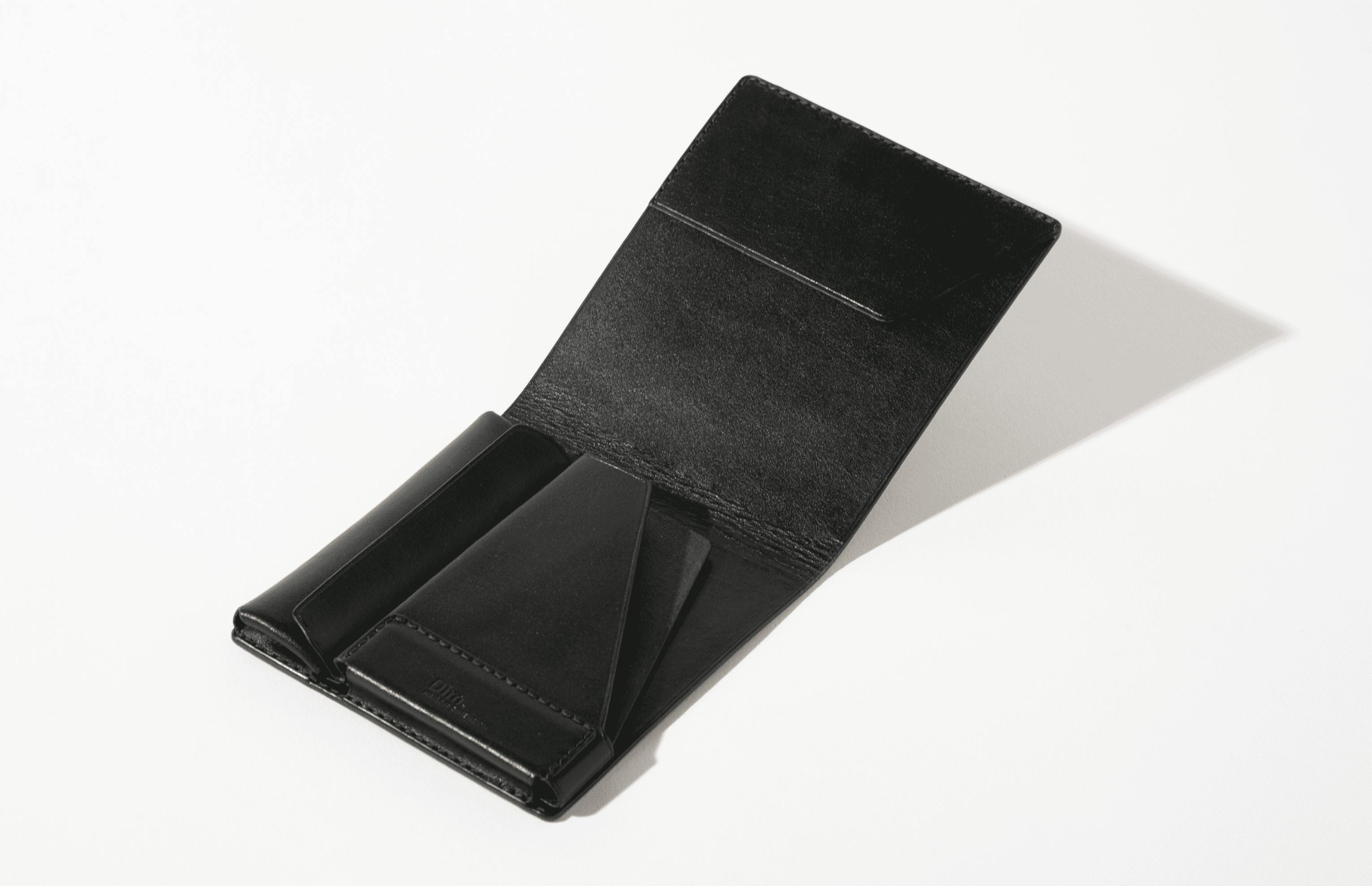 縦開きの二つ折り財布なのに横に開くコインポケットや、コンパクト財布では敬遠されていたマグネット式開閉といった前衛的なデザインと仕様を採用することで、サイズと使う人の動きを最小限(ミニマル)にまで圧縮することができました。