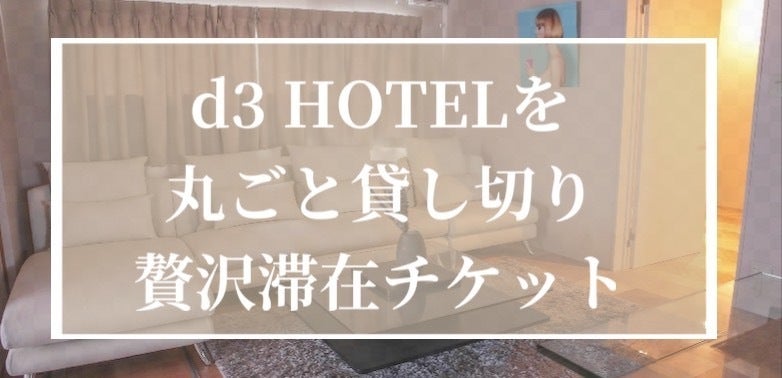 ※4人以上でのご利用場合、一人につき2,000円 (宿泊料金,サウナ付き) の追加料金が発生いたします。⑦.d3 HOTELを丸ごと貸切って贅沢滞在チケット 1泊 6万円 (有効期限 2023/3/31)