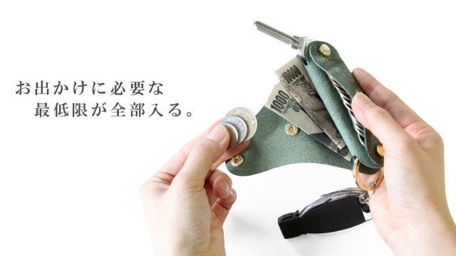 お出かけの際に必ず必要な”鍵orスマートキー”をベースに最低限の現金を入れられる仕様となっております。