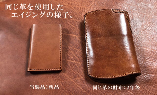ニートフットオイルをたっぷり含んでおり使い込んでいくうちに熟成され、手触り・艶ともに増していきます。しっとりした手触りと高級感あふれる艶が特徴で私たちが選んだ熟成エイジングレザーの中でもより変化を楽しめる革だと思います。