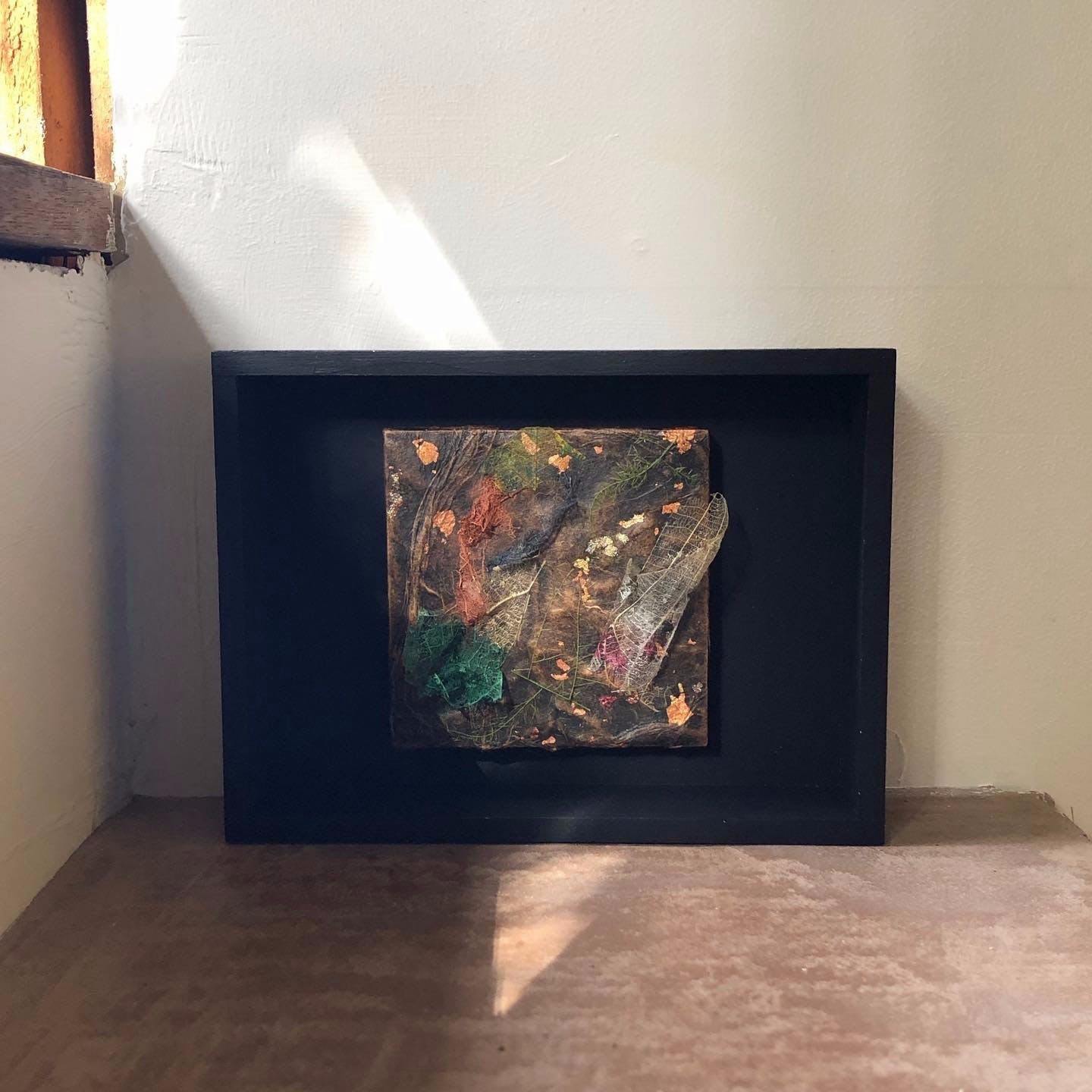 韓紙/葉脈/ 葉 / 箔/木粉粘土/アクリル/針葉樹合板
