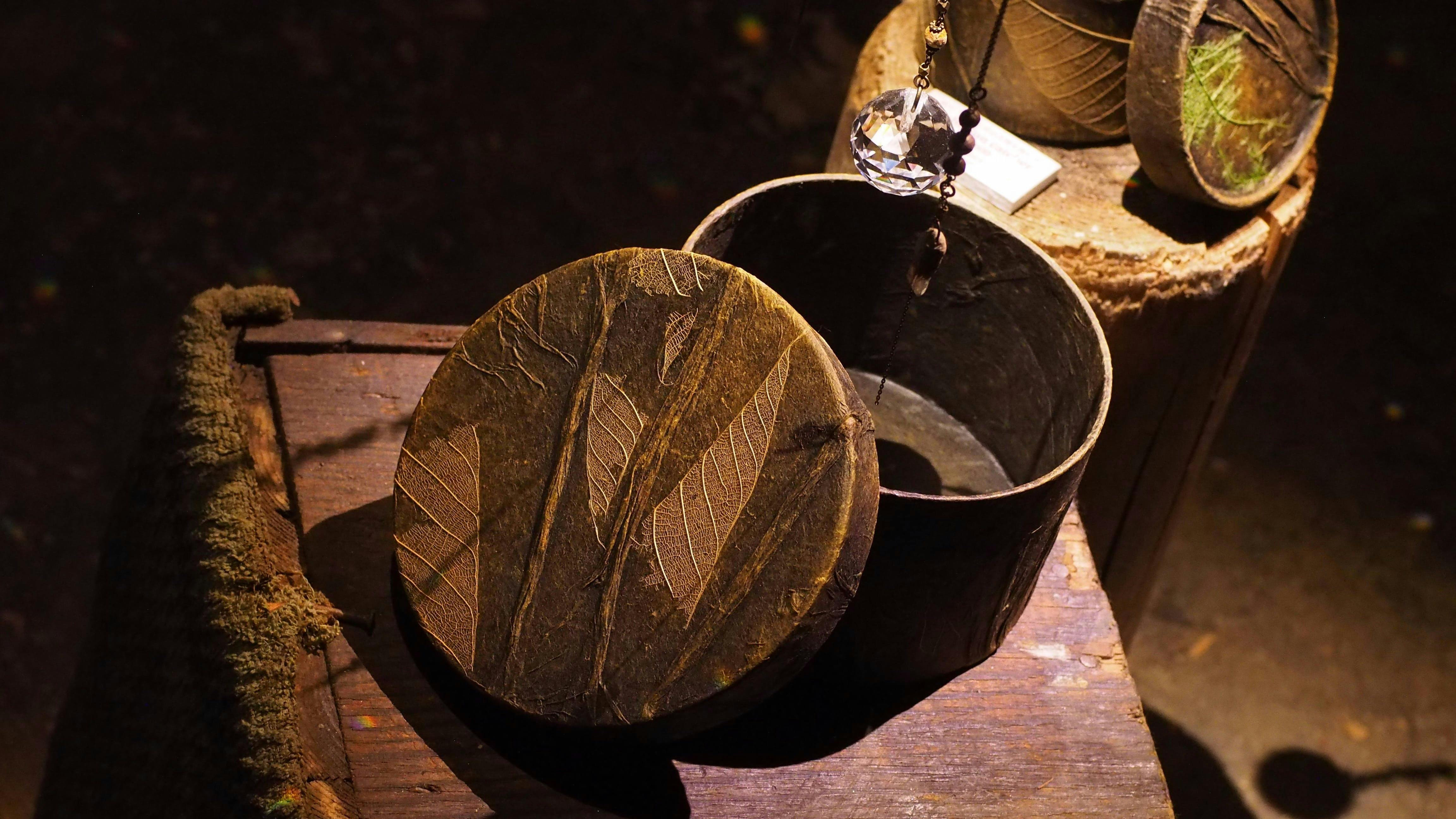 真っ黒な韓紙を韓国の工芸技術の一つを取り入れ、『朽ち』を表現しています。