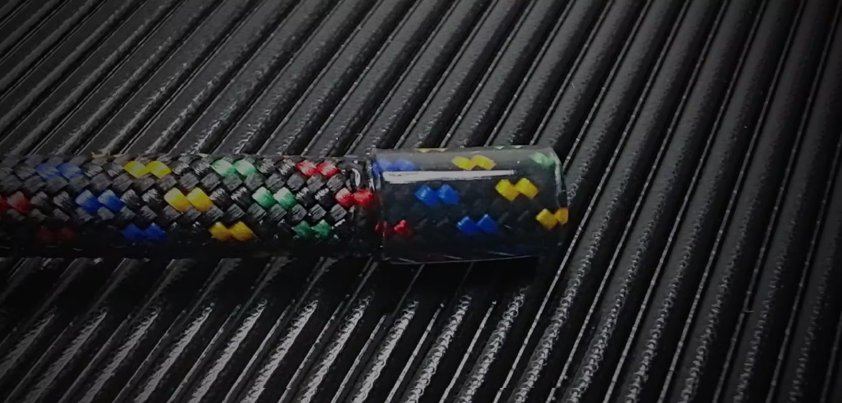 熱収縮チューブの加工で、ロープの切断を防ぎます。