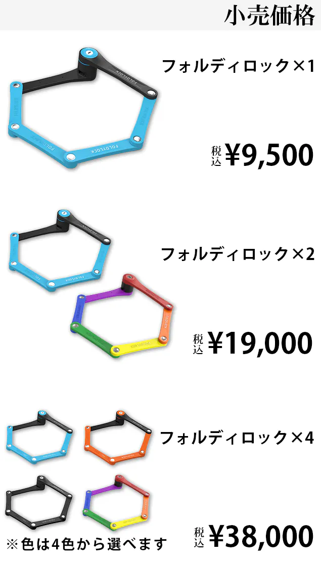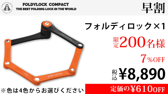 フォルディロックは、プレミアムな折りたたみ自転車ロックです。