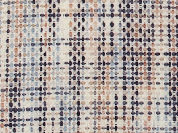 "ウール"の生地の特徴は、非常に細かい編みこみ模様。丸いドットの連続にも見えるこの生地は、空間にとても軽くて愛らしい印象を与えてくれます。今回はブルーベースの生地を選んでいますが、ブルーだけでなくホワイトやオレンジも使われた、カラフルな仕上がりとなっています。こちらのブランドもイギリスのHARLEQUIN(ハーレクイン)です。