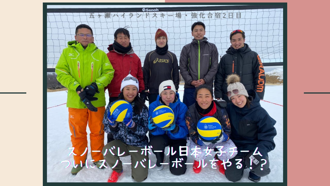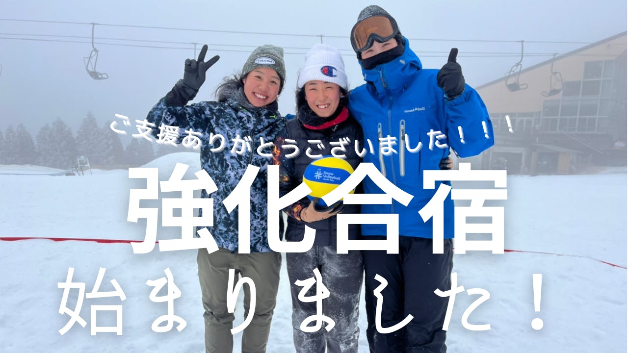 2022/02/03 07:58合宿2日目宮崎県五ヶ瀬町にあります五ヶ瀬ハイランドスキー場のゲレンデの一時部をお借りしての強化練習2日目でした.1日目は暴風のためネットを立てることもできませんでしたが,この日は打って変わって最高のコンディションでした.風の影響を受けることもほとんどなく,インドア組(ヘッドコーチ塚田:写真右上,石川選手:写真前列左から2番目)もビーチバレー組(片田選手:写真前列左から1番目,樫原選手:写真前列右から2番目)もお互いの良さを存分に発揮していました!強力助っ人!?この日からコーチ役の伊藤くん(大学ビーチバレー選手:写真後列右から2番目)が合流しました!さらにこの日たまたまスキー場に遊びに来てた宮崎でバレーボールをしている花田さん(写真後列中央)に急遽参戦していただきました!日本国内初?スノーバレーボール3対3エキシビションマッチ(ふつうの練習試合)日本女子チームvs. 男性コーチ陣チームの行方は!!??この日は3対3のゲーム形式の練習を行いました.実際のルールと同じ15点先取の3セットマッチで行いました.実際の映像をYouTubeチャンネル「Thumbs Up Smile(サムズアップスマイル)」にアップデートしましたので,こちらで共有させていただきます.合宿2日目・ゲーム練習1セット目合宿2日目・ゲーム練習2セット目合宿2日目・ゲーム練習3セット目なお,3セット目については2022年2月3日19:45~プレミア公開という形でアップロードさせていただいていますのでご注意ください.3セット目の結果を伏せた状態でこの日の練習試合の様子をお楽しみいただければと思います.オンラインミーティングについてチームのオンラインミーティングを2月3日(水)の20:30~21:30に開催いたします.Zoomのルーム情報は3セット目の動画のプレミア公開前,19:30頃に参加者の皆様にご連絡させていただきます.チームの人間もできる限りプレミア公開動画を皆様と一緒に視聴して,そのうえでオンラインミーティングに臨みたいと考えております! もっと見る