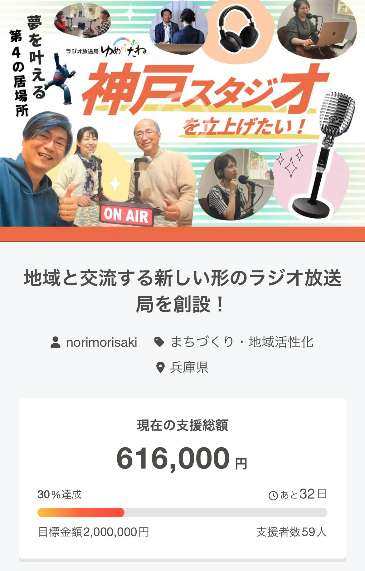 2025/02/01 15:03人生2度目のクラファン挑戦!ついに昨夜24:00に終了しました支援金2,660,600円!支援者数257人!ラストのカウントダウンLIVEではいつものメンバーやきさんに加えて、てらしゅんさんとミワさんのお二人も加わり強運なメンバー勢揃いの LIVEとなりました!そのおかげで23:59のギリギリまで支援が止まることなく続きましたさらになんと!LIVE中にゆめのたね放送局代表の岡田尚起さんと佐藤大輔さん、幹部メンバーの藤本あきよさんまで見に来てくださった LIVE中にメッセージもいただいて、嬉しかったです!とにかく、めっちゃ盛り上がりましたー!最後の最後まで感無量です最終日の支援は28名から435,000円と最高のフィナーレとなりました!本当に本当にありがとうございましたご支援だけでなく、数えきれない方々からの熱いメッセージや投稿のシェア、LIVE配信での応援などなど。みなさんのお気持ちがさらに新たな仲間を巻き込み、大きな応援の渦になったと思います必ず最高のスタジオを作ります今回のクラファンがこんなにも心地よいものとは思いませんでした応援されることで責任やプレッシャーに感じる苦しいものと思っていましたみなさんの応援がとても優しくておかげで常に前向きで自分らしくいられましたさすが、ご縁応援貢献をテーマに夢ある番組をお届けする『ゆめのたね放送局』ですこれからも自分らしく突き進んでいきます!神戸スタジオの公式LINEを作りました!神戸スタジオ開局に向けてのラジオパーソナリティ募集の案内やスタジオで開催されるイベント案内など、定期的にお知らせが届きます。ぜひご登録ください。神戸スタジオ公式LINE登録はこちらをクリック!よろしくお願いします! もっと見る