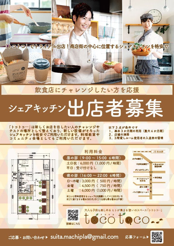 2022/02/21 18:05JR吹田駅からアーケードを歩いて5分のところ吹田市旭通商店街に作っているトコトコのシェアキッチンのチラシができました。創業だったり、副業だったり、ガクチカだったり、色々なチャレンジをするのにとっても安くて、可能性の高いお店になっています。皆様の応援もあり、どんどん形になってきています。オープンできる日が楽しみです。シェアキッチンの詳細はこちらからhttps://tocotoco-suita.com/sharekitchen/ もっと見る