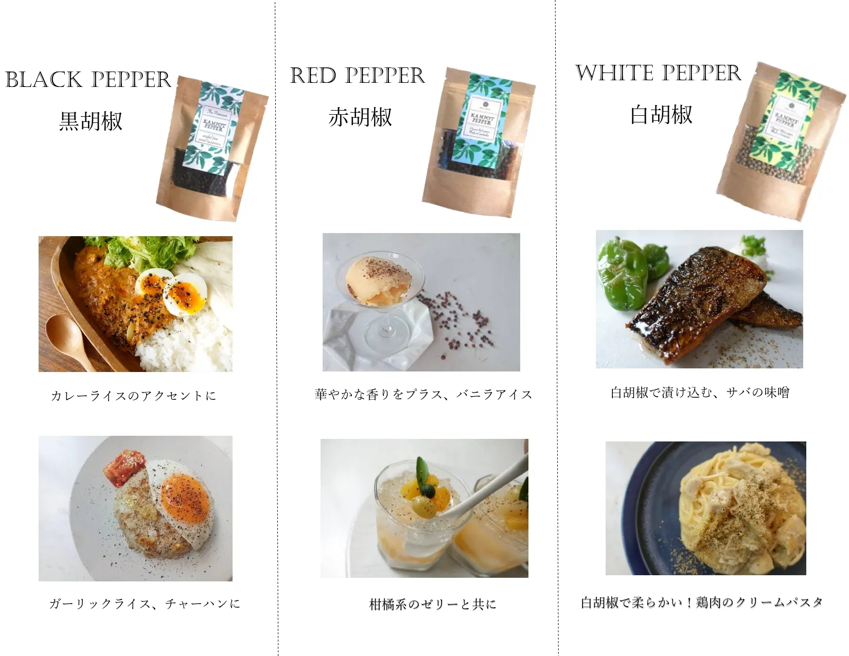 カンポットペッパーには"味"があります。ぜひ料理のメインとしてお楽しみください。