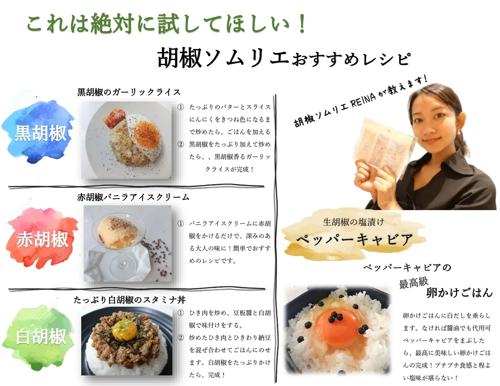 ✔「胡椒ソムリエREINAセレクション胡椒使用」というポップ利用権、写真素材も提供