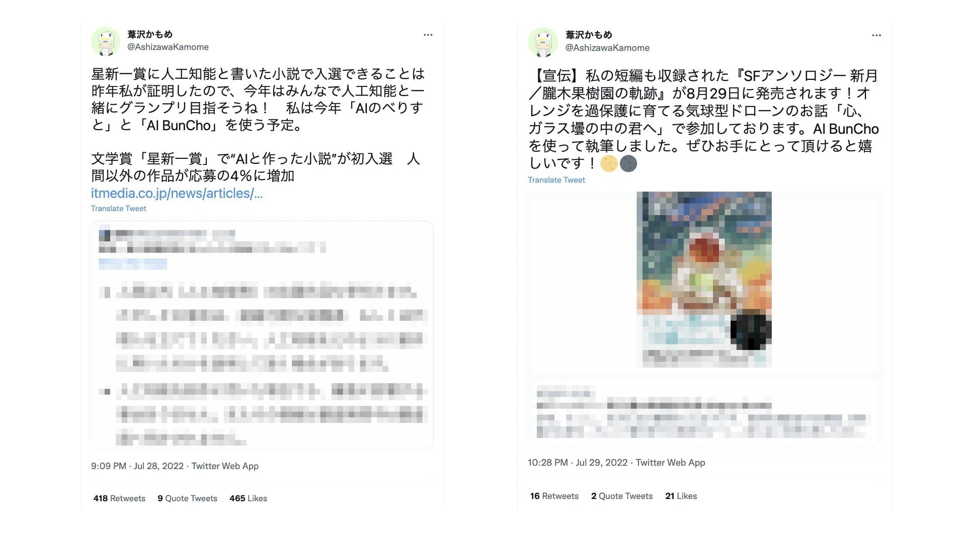 AI BunChoを用いた作品を執筆されていることを公表されており、大変励みになっております。
