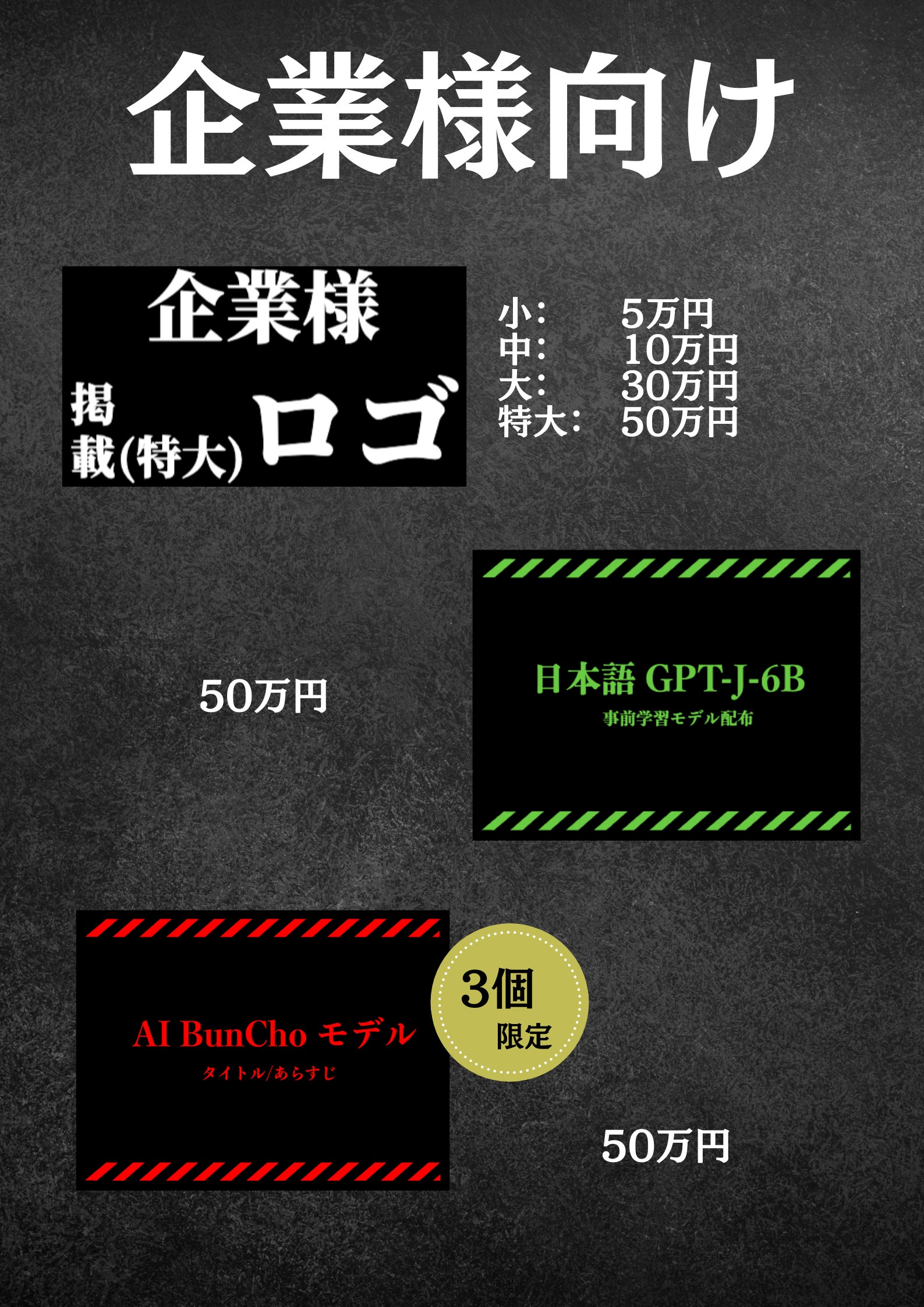 企業様のロゴを、AI BunChoサイトのご支援者様クレジット掲載ページ上部に掲載させていただきます。