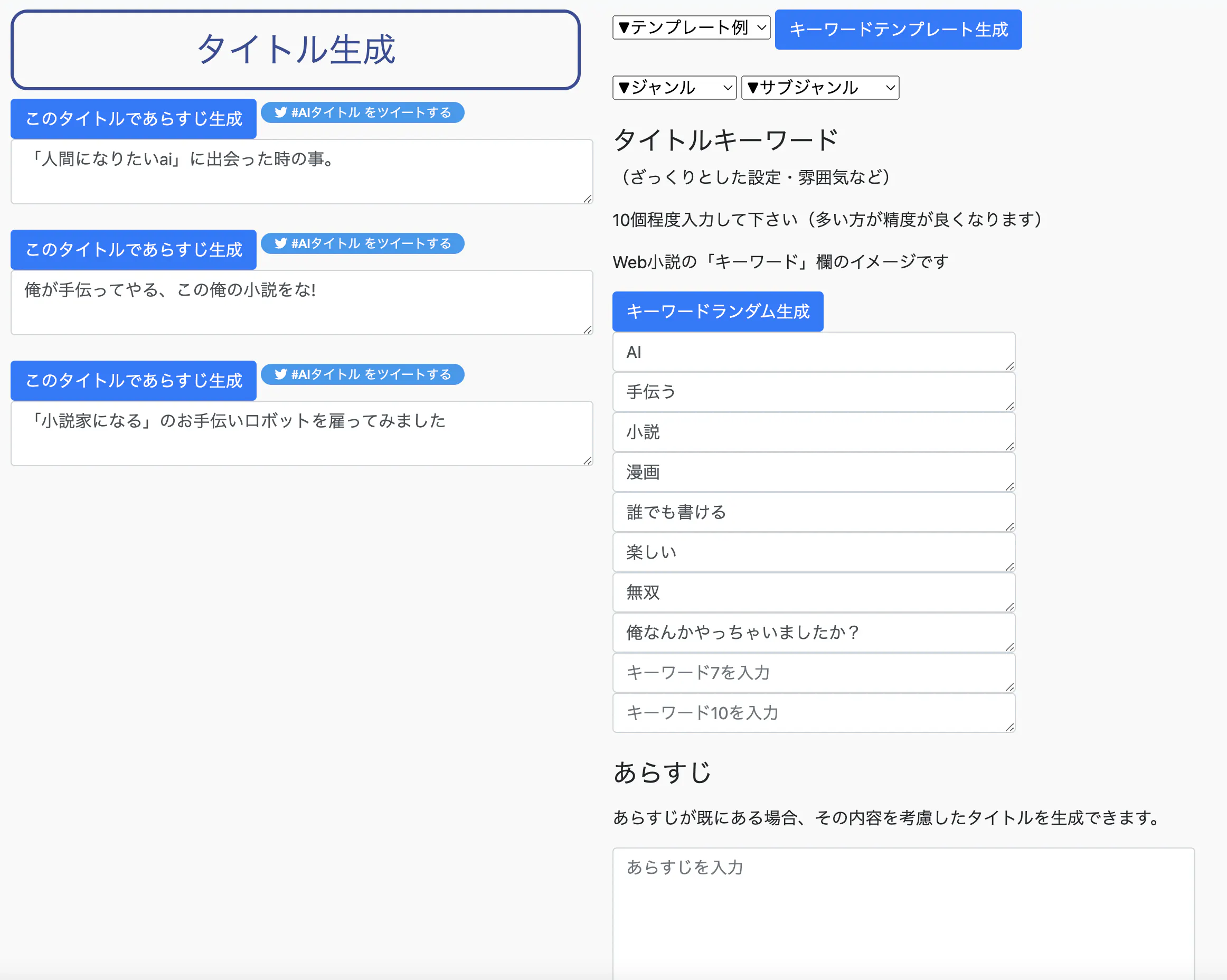 ネタ出し用に、キーワードからだけでもタイトルを生成できるよ