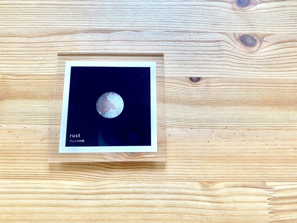 京都での惑星発見器展で展示するアクリルパネルで、私が採集した惑星を展示用パネルとしてデザインしました。アクリルの透明感を生かしながらポラロイドのような味を演出しています。左下には元になった素材の名前が刻まれます。