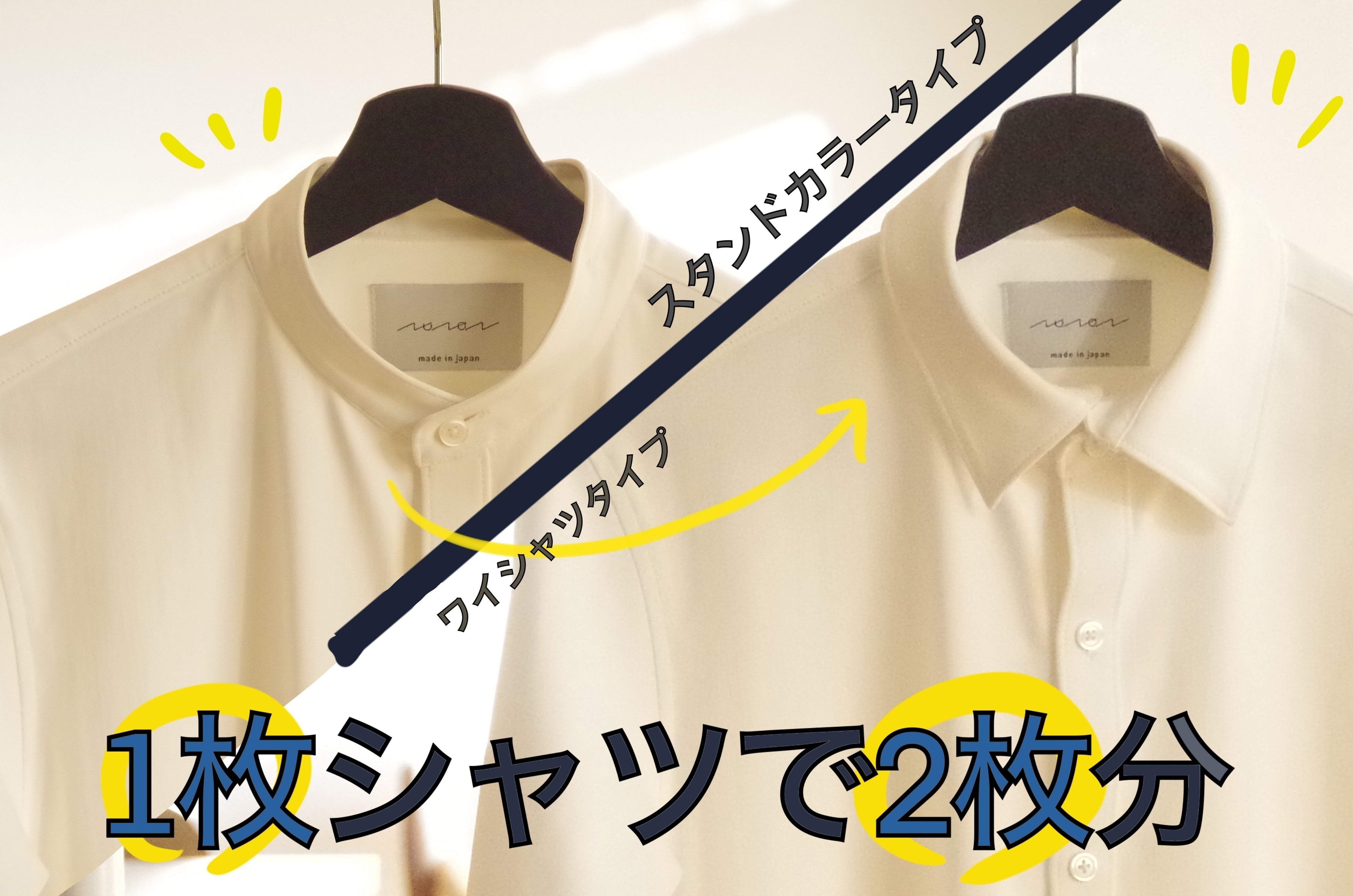 メンズのシャツには珍しい《付け襟》を採用することで、1着で2種類のデザインを楽しめます!