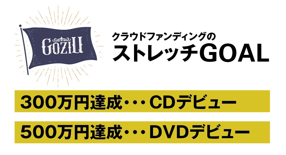 私たちGoziUは、認知度をあげスポンサーを獲得し、活動範囲を広げることで、私たち自身が日本でどのような形で貢献できるのか!?を知るための社会実験だと思っています。いくつになってもやりたいことを実現するための姿勢と行動を多くの方に知ってもらいたいと思っています。 上記のゴールを達成することで、支援いただいた方にCDやDVDを提供することができるようになると共に、社会に影響を与えるためには、動画(YouTube・PVを含む)による発信が不可欠だと思っています。