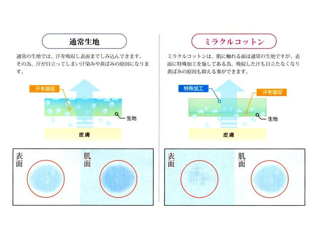 厚みのない生地での「汗染み防止加工」ミラクルコットンは