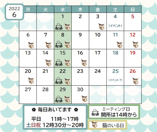2022/05/31 13:55NPO法人CAN ピッケノハコスタッフです6月のピッケノハコの開所予定カレンダーができましたのでお知らせいたします。カレンダーは主にピッケノハコを利用してくださる方向けに作っているので、ここには記載がありませんが、6月は、法人として今年度の事業などについて協議する総会があります。昨年の総会から、はやくも1年か…色々あって、あっという間な1年。あっという間だけど、振り返るとこの1年間に関わったたくさんの方々の顔を思い浮かべることができます。皆さんとのつながりのおかげで、また1年活動を続けていくことができそうです。ありがとうございます。*・*・*・*・*・*・*・*・*・*・*・*CANの公式ホームページでも、日々の活動についてお知らせしております。ぜひのぞいてみてください。https://can-picke.com/ もっと見るご支援くださっている皆様へ CAN理事会より